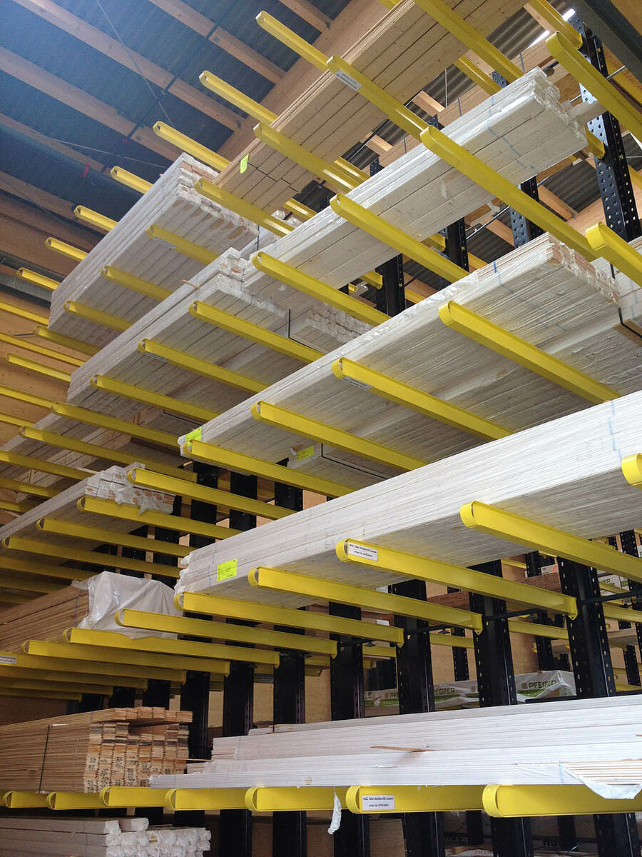 Skladiščenja lesa je posebno raznovrstna in zahtevna naloga. OHRA že preko 40 let ustvarja tehnično prednost za gospodarne in varne regale in rešitve skladiščenja. Tako je izdelala izvrstno, prosto gibljivo nosilno konzolo, danes standard v lesnih trgovinah. Nosilna konzola se pri udarcu umakne in s tem varuje dragoceno blago in regal.