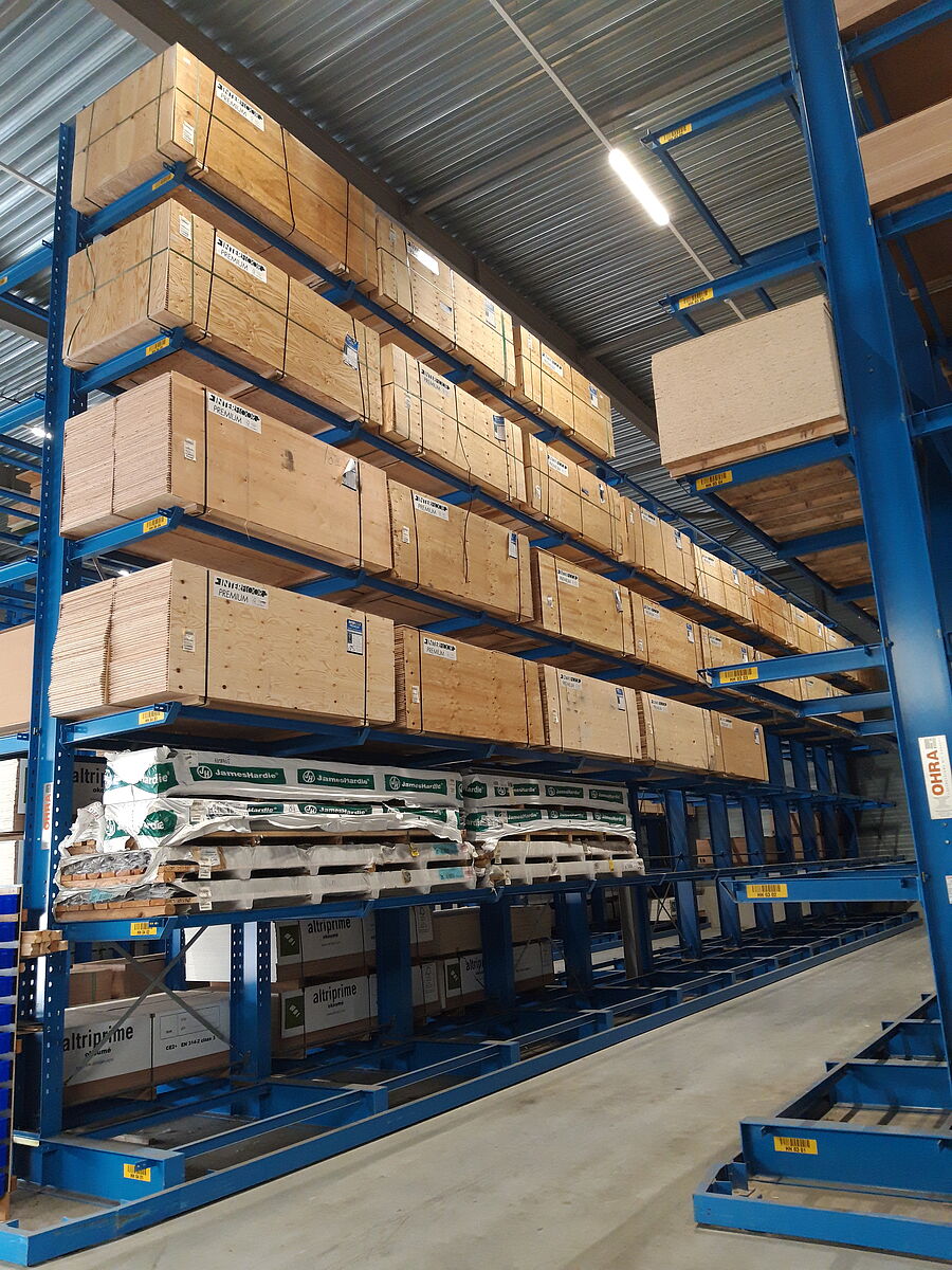 4PLUS Bouwmaterialen B.V., zadruga za nabavo surovin, ki združuje 59 samostojnih trgovcev z gradbenim materialom, je z uporabo konzolnih regalov OHRA več kot podvojila zmogljivost svojega glavnega skladišča v nizozemskem kraju Born. Če se je do zdaj gradbeni material, kot so lesene letve, tramovi ali suhomontažne plošče, skladiščil eden vrh drugega na tleh skladiščne hale, je mogoče zdaj z regali višine 8.470 mm povsem izkoristiti višino hale, ki znaša 10 metrov. Slednje ne zagotavlja le več skladiščnega prostora, temveč bistveno poenostavlja celotno rokovanje z gradbenimi materiali, izboljšuje varnost delavcev v skladišču in zmanjšuje število poškodb blaga na minimum.
