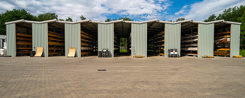 Podjetje Abies Polska se je zato odločilo, da talno skladišče zamenja s konzolnimi regali. OHRA je dobavila skupno osem regalov, od katerih je vsak opremljen s šestimi nivoji za shranjevanje. Najvišji nivo je na višini 5 metrov – to pomeni, da se obstoječa površina zunanjega skladiščnega prostora lahko veliko bolje izkoristi. Vsak regal ima streho, ki na obeh straneh štrli 2,7 metra. Strehe so postavljene tako, da se prekrivajo. Dodatno zaščito daje obloga zunanjih sten, ki je izdelana iz kakovostne pločevine po specifikacijah gradbene uprave. Regalni sistem tako tvori samostojno, visokokakovostno zgradbo.