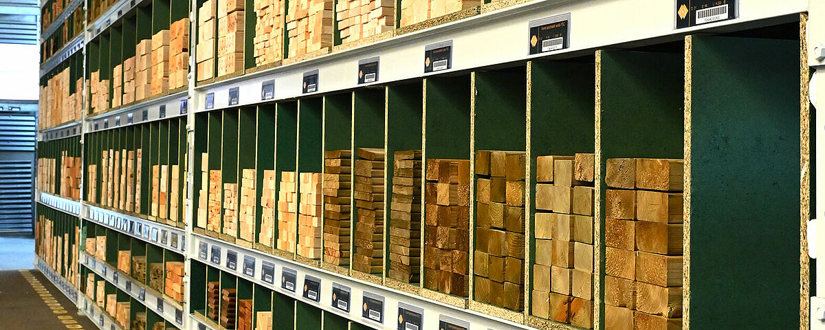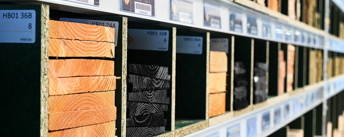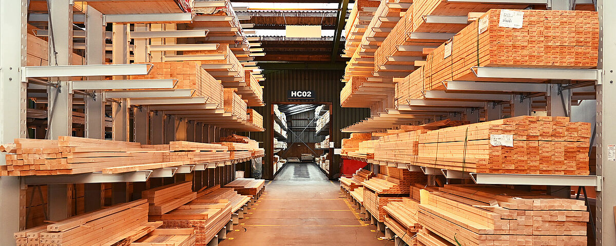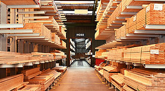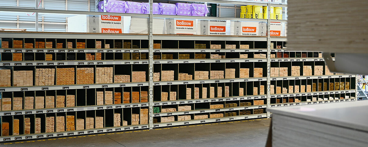 Da bi dosegli neprekinjeno skladiščno površino, je podjetje OHRA v skladiščne ravni kot dno vgradilo iverne plošče. Razdeljene so z 18 milimetrov debelimi ivernimi ploščami, ki jih je trgovina Brentjens montirala sama. Tako dobimo predelke različnih širin, v katere je mogoče preprosto vzdolžno vstaviti letve in deske. V vsakem predelku je samo ena vrsta izdelkov – tako lahko stranka zelo hitro najde želene prereze in ima hiter dostop do želenega blaga. Zgornji del regala se uporablja tudi »klasično« kot paletni oz. polični regal in zagotavlja dodaten prostor za shranjevanje najrazličnejših materialov.