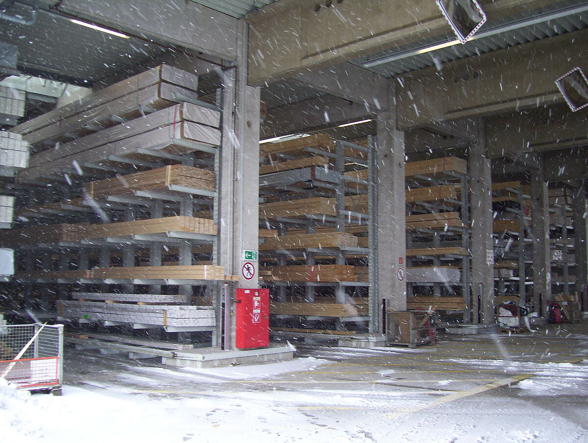 V le dveh tednih je strokovno osebje iz Kerpna nato zmontiralo 236 skladiščnih mest za masivni konstrukcijski les in lameliran les v 40 in 50 metrov dolgih in 6,2 metra visokih vrstah konzolnih regalov. Skupaj je tako nastalo 2.800 tekočih metrov regalnih ravni za dolg les. Dodatno je bilo realiziranih 300 odlagalnih mest v paletnih in konzolnih regalih, v katerem se skladišči blago na paletah in osnovna ponudba. Skladišče se upravlja z dvema bočnima viličarjema Hubtex in enim čelnim viličarjem Linde. Že samo v prvih šestih mesecih po odprtju skladišča je bilo prestavljenega okrog 3.300 kubičnih metrov lesa.