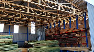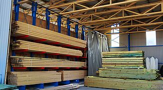Pri podjetju Farkas-Fa dva 12,4 metra dolga konzolna regala tvorita stene. Ker so nosilci regalov OHRA izdelani iz toplo valjanih jeklenih profilov in zato nudijo visoko nosilnost, omogočajo velike razpone v strešni konstrukciji: pri podjetju Farkas-Fa je razdalja med obema vrstama regalov 15 metrov. Tako lahko kasneje na sredino hale enostavno postavite tretjo vrsto regalov. Podjetje Sarok-Fa pa se je odločilo za regalno halo brez stranskih sten – tako lahko zrak prosto teče skozi shranjen les in ga nato suši. Kot nosilna konstrukcija služijo tri vrste dvostranskih konzolnih regalov. Za podjetje Sarok-Fa je bila pomembna značilnost regalov OHRA, da je mogoče prilagodljivo obešene konzole nastaviti v mreži po 100 milimetrov brez orodja. Tako je mogoče regale kadar koli prilagoditi spreminjajoči se ponudbi izdelkov.