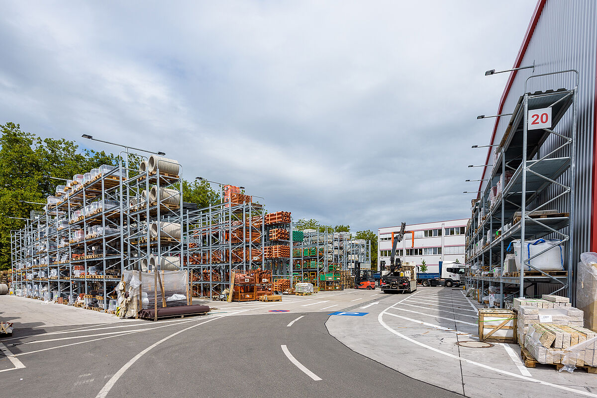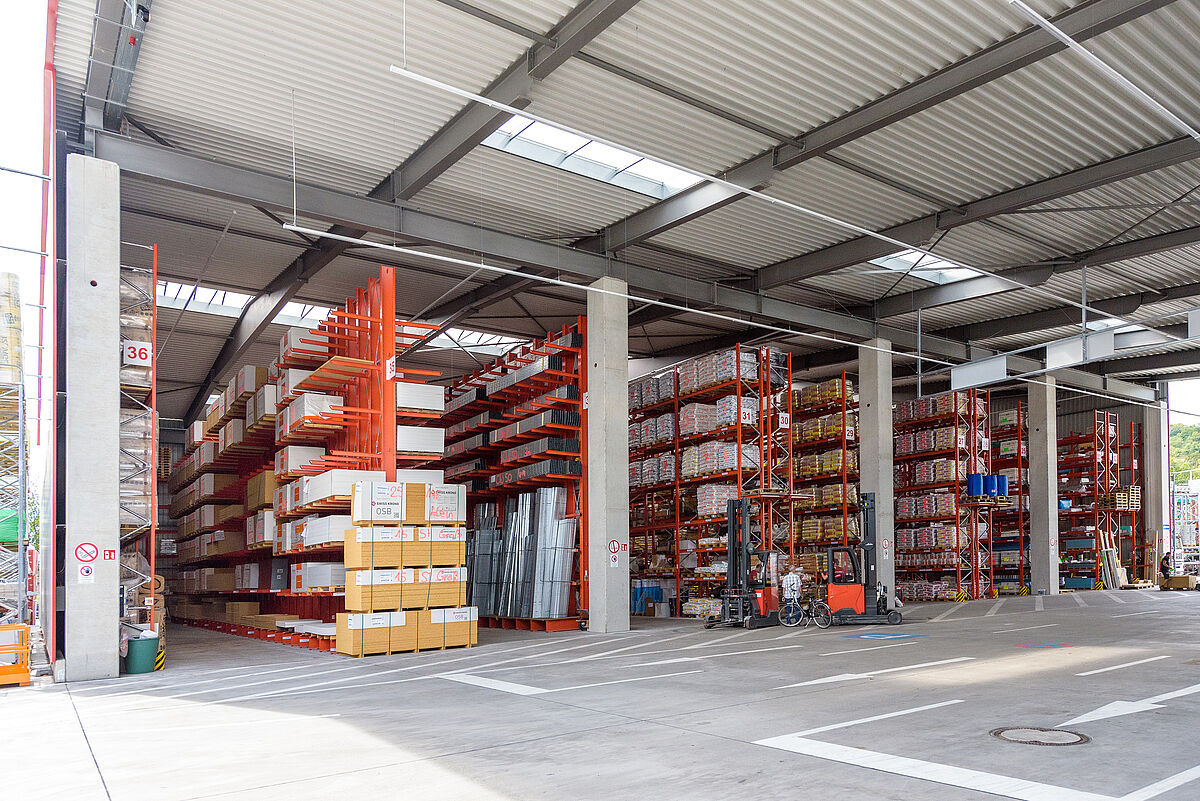 Götz + Moriz, vodilni trgovec z gradbenim materialom in ploščicami v Südbadnu, je občutno razširil svojo lokacijo v Lörrachu. Podjetje je investiralo predvsem v večje skladiščne površine in novo skladiščno halo, vse to pa je opremilo s paletnimi in konzolnimi regali podjetja OHRA. Pri namestitvi regalov je bilo treba premagati posebne izzive: nekatere regale je bilo treba namestiti pod naklonom, pri drugih je bilo treba vračunati moč vetra, pri vseh pa upoštevati potresno območje 3. stopnje. Kljub temu je bilo mogoče zahvaljujoč stabilnemu načinu gradnje regalov OHRA doseči višine do 9.100 milimetrov in skupno nosilnost posameznih regalov do 25.200 kilogramov ter nosilnost posameznih predalov do 5.000 kilogramov.