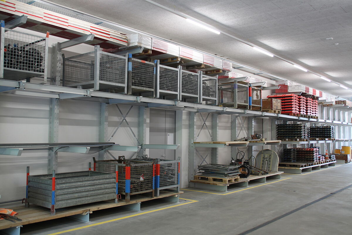 Švicarsko gradbeno podjetje Gottlieb Müller je svoje novo skladišče za gradbeni material, naprave in orodje opremilo s konzolnimi in paletnimi regali proizvajalca OHRA. 16 paletnih regalov v novi skladiščni hali zagotavlja prostor za palete in mrežaste zaboje. Konzolni regali zunaj in znotraj skladišča, ki so deloma opremljeni z mostovi med konzolami in policami, pa brez kakršnih koli pripomočkov za skladiščenje zagotavljajo prilagodljivo in vsestransko skladiščenje dolgega tovora, palet, mrežastih zabojev in izdelkov. Novega skladišča ne uporablja le podjetje Gottlieb Müller AG, temveč še tri podružnice. Na novo pridobljene skladiščne zmogljivosti, združene na eni lokaciji, omogočajo krajše poti in natančnejše logistične postopke.