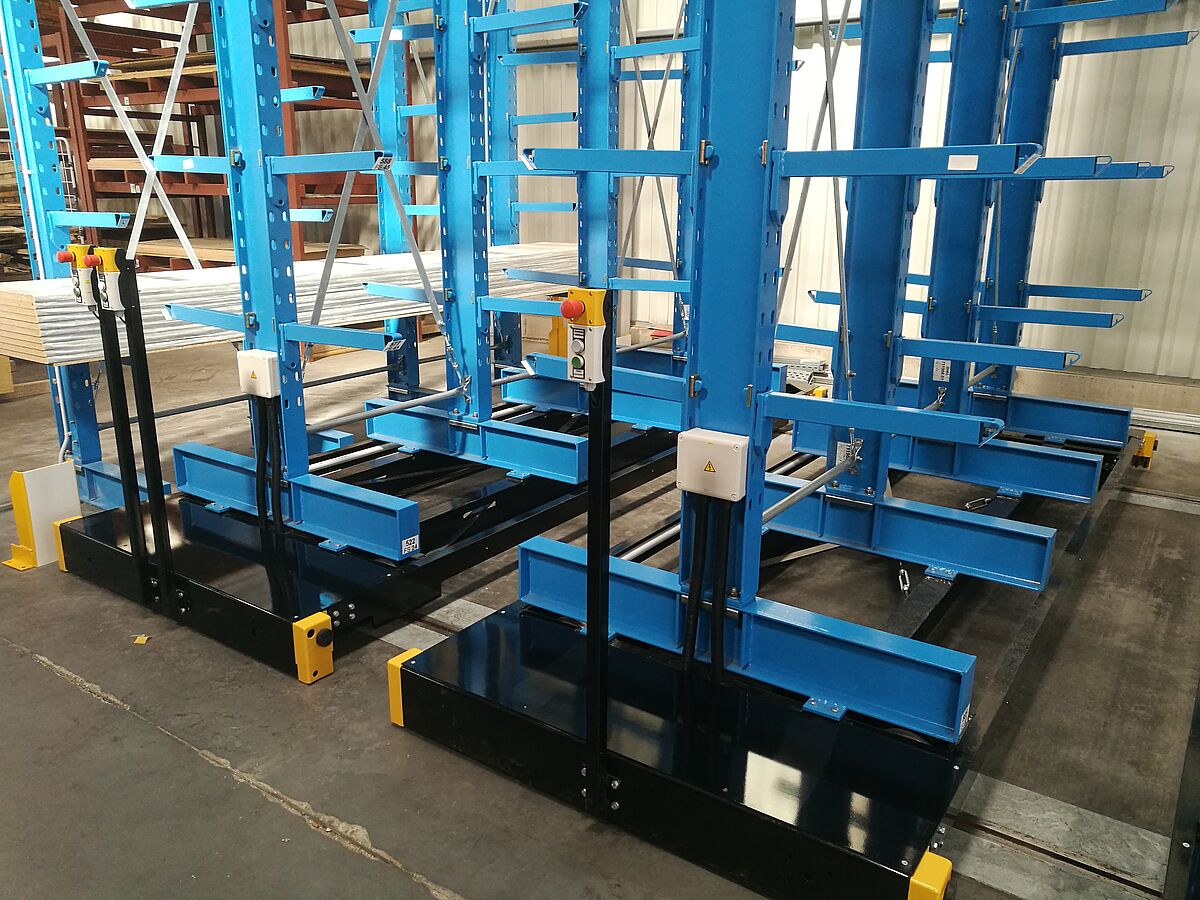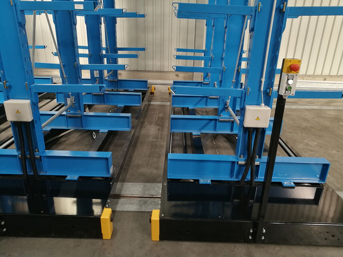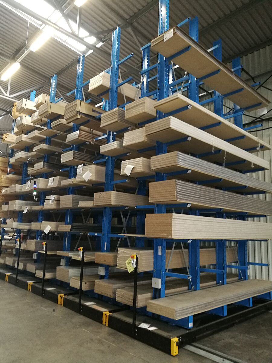 Novo skladišče za kuhinjske pulte je sestavljeno iz skupno sedmih regalnih vrst. Vsaka vrsta je visoka 6.600 milimetrov in dolga 3.300 milimetrov ter sestoji iz štirih stebrov, na katerih je obešenih devet premičnih regalnih konzol. Tako je v skladišču skupno deset skladiščnih ravni, pri čemer najnižja raven leži na peti stebra. Zunanje vrste so izvedene enostransko in so fiksirane na tleh, ostale vrste pa so nameščene na premičnih vozičkih, ki se premikajo po tirnicah na tleh. Premični vozički, na katerih so nameščeni regali, stojijo tesno skupaj. Ko osebje potrebuje blago iz določenega regala, premične vozičke odmakne enega od drugega in ustvari prehod. Krmiljenje poteka iz viličarja prek daljinskega upravljanja, mogoče pa je tudi ročno upravljanje. Takšen sistem omogoča kar najboljšo izrabo prostora, saj je mogoče v primerjavi z običajnimi »nepremičnimi« regali doseči 100 odstotkov večjo skladiščno zmogljivost.