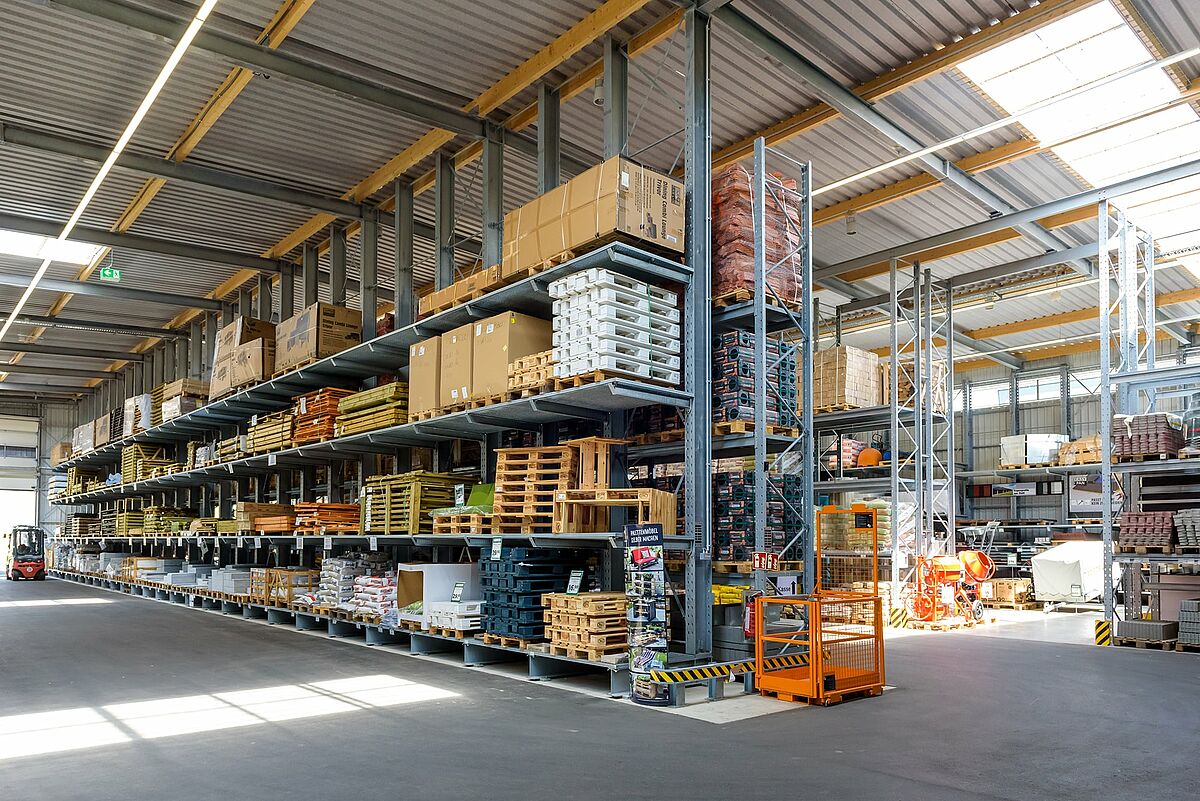 Podjetje Jos. Schneider GmbH je s pomočjo paletnih in konzolnih regalov podjetja OHRA v svoji novi trgovini z gradbenim materialom v bavarskem mestu Dorfen vzpostavilo skladišče tipa drive-in, kamor lahko stranke po vrtne in lesene izdelke pridejo kar s svojim avtomobilom. Podjetje OHRA je skladišče tipa drive-in izvedlo v obliki regalne hale: pri tem služijo podporniki regalov hkrati tudi kot nosilna konstrukcija za gradnjo hale. Čas projekta je zato krajši in zagotavlja občutne prihranke stroškov.