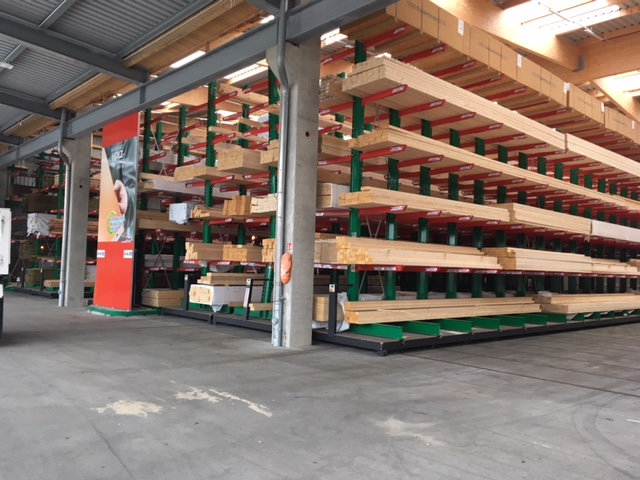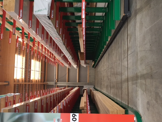 Skladišče izdaja gradbeni material po naročilu obrtnikov in zasebnih investitorjev. Skladišči izdelke, kamor spadajo različni gradbeni materiali, les do dolžine 13 metrov in različne vreče. Da bi strankam omogočili čim večjo ponudbo blaga, je bilo pri modernizaciji pomembno zlasti povečanje skladiščnih zmogljivosti – do sedaj so izdelke skladiščili izključno v večvrstnih konzolnih regalih.