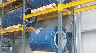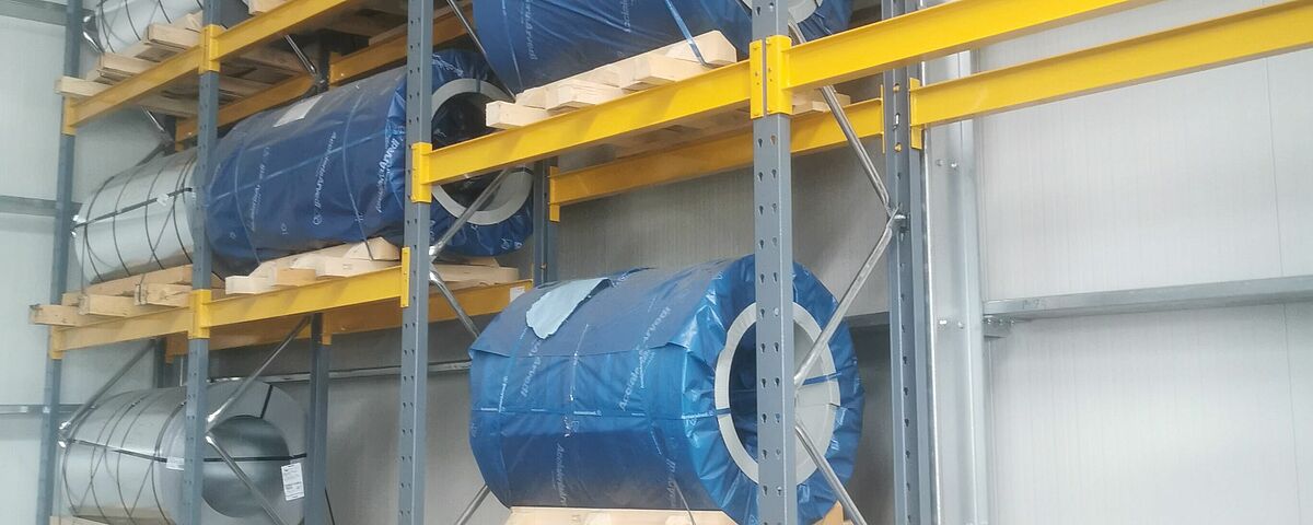 Koluti najrazličnejših (neželeznih) kovinskih pločevin so izhodiščni material, iz katerega podjetje Invesztál izdeluje najrazličnejše oblike in tipe strešnih kritin in žlebnih sistemov. Prej jih je podjetje shranjevalo na tleh ali paletnem regalu, ki ni bil primeren za skladiščenje v kolutih. Z novimi, po meri izdelanimi težkimi paletnimi regali podjetja OHRA je podjetju Invesztál uspelo zmanjšati poškodbe kolutov in učinkovito izkoristiti prostor v novem skladišču.
