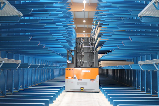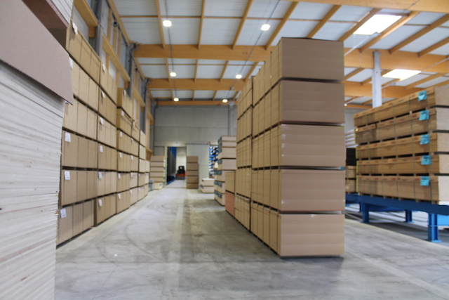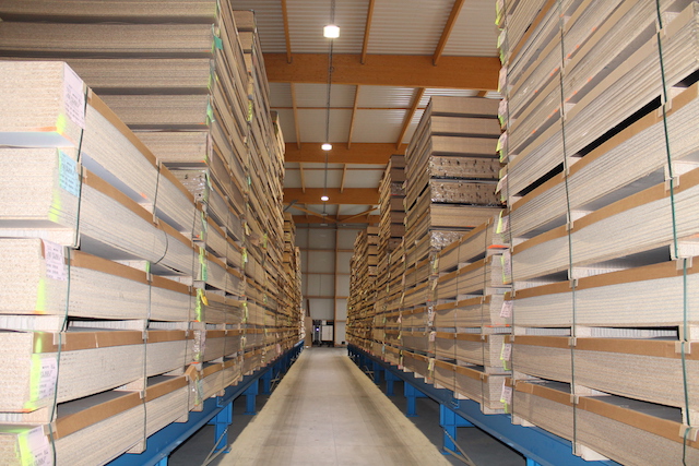 Podjetje Hue-Socoda, eden vodilnih distributerjev materialov za lesne plošče v Bretanji, je svoje novo skladišče v kraju Langueux opremilo z regalnimi sistemi OHRA: zahvaljujoč stabilnim konzolnim regalom je bilo mogoče regalni sistem izvesti v višini devet metrov – s tem je več kot dvakrat višji od regalnega sistema v starem skladišču. Poleg tega skladiščni oder optimizira izrabo površin v skladišču: z njim je mogoče drobni material skladiščiti v dveh etažah in prihraniti prostor. Konzole višine 90 cm na mestu vstopa materiala poleg tega poenostavijo prevzem dobavljenih paketov plošč z viličarjem.