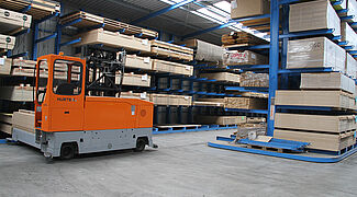Tako je nastala 38 metrov dolga hala, katere zunanje stene sestojijo iz po enega enostranskega konzolnega regala. Med ta dva regala je bil dodatno na sredino nameščen dvostranski konzolni regal. Vodilne tirnice omogočajo uporabo stranskega nakladalnega vozička, ki se premika v več smeri. S pomočjo individualno rezanih regalov višine 5,5 metra, 6,3 metra in 7,1 metra je bilo mogoče halo optimalno prilagoditi okolici. Vsaka od 1.850 milimetrov dolgih konzol ima nosilnost do 600 kilogramov. Pri tem konzole niso privite ali privarjene, temveč so premično, v 100-milimetrski mreži obešene na stojala regalov. Tako lahko ob udarcih popustijo.