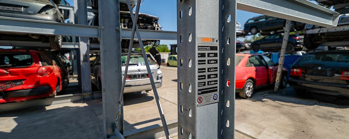 Podjetje Legalny Autozłom se je zato odločilo za uporabo konzolnih regalov podjetja OHRA. Podjetje OHRA, ki je vodilno na evropskem trgu za konzolne regale, je posebej za reciklažne obrate in vlečne službe razvilo in optimiziralo robusten konzolni regal za skladiščenje vozil in delov vozil. Robustni toplo valjani jekleni profili nosilnih elementov konzolnih regalov pri tem omogočajo varno skladiščenje večjega števila avtomobilov enega nad drugim. Visoka kakovost stojal in regalnih konzol poleg tega zagotavlja dolgoročno in s tem gospodarno rešitev.