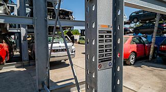 Podjetje Legalny Autozłom je izrabljena vozila do zdaj skladiščilo na tleh v zunanjem prostoru s površino 3000 kvadratnih metrov, pri čemer sta bili po dve vozili naloženi eno na drugo. Vendar pa so bile skladiščne zmogljivosti pri takem načinu skladiščenja skoraj izčrpane. Poleg tega je bilo treba do zdaj za dostop do želenega avtomobila premeščati karoserije. Za to je bilo potrebnega veliko časa, pogosto pa je povzročilo tudi škodo na avtomobilih za razgradnjo.