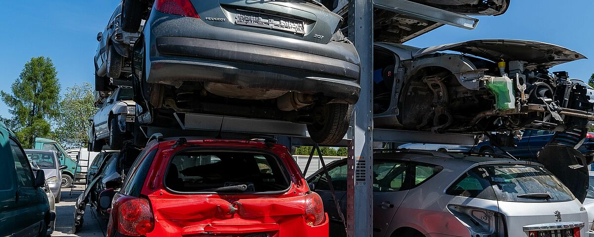 Trije izrabljeni avtomobili, naloženi eden nad drugega – vendar varno!