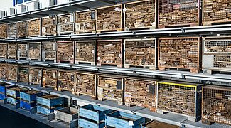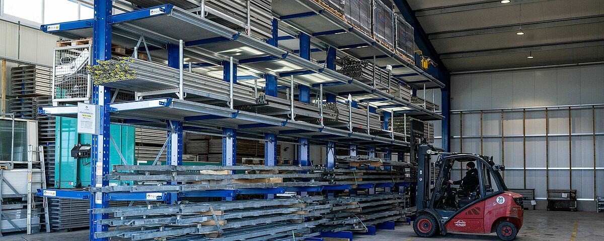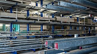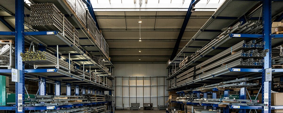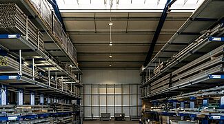 Nehomogeno skladiščno blago je predstavljalo izziv: Na novih regalih morajo najti svoje mesto predmeti z različno težo, dolžino in višino ter različni pripomočki za shranjevanje (škatle, palete, stojala s štirimi vogalnimi nogami). »V praksi je bilo za nas pomembno, da vse obstoječe skladiščno blago shranjujemo samo v enem shranjevalnem sistemu,« pravi Fabian Bechtold, generalni direktor podjetja LEUBE. Da bi to omogočili, so bile vse skladiščne ravni konzolnih regalov opremljene z mrežastim dnom. Tako lahko prilagodljivo in brez težav skladiščijo vsak kos.
