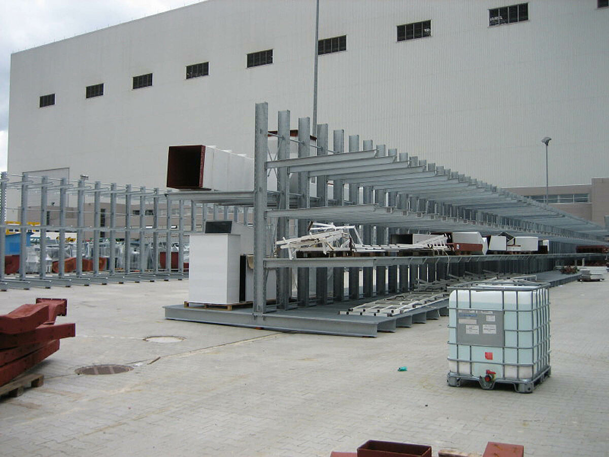 Zaradi velike teže in slabe nosilnosti tal, se je kot rešitev razvila podkonstrukcija regala, ki točkovno obremenitev posameznega stebra odvede na večjo površino. Za uporabo na zunanjem prostoru se regalna konstrukcija vroče cinka in ustrezno montira z OHRA izkušenimi monterji.