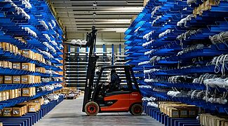 Mundinger Transport, špediter z jeklenimi predali za prevoz paličnega materiala, v svojem novem skladišču v Rudersbergu v zvezni deželi Baden-Württemberg blago ves čas premika z viličarji. »Žerjavi, ki so v uporabi v večini skladišč dolgega tovora, so pogosto ozko grlo za učinkovito interno logistiko,« po svojih izkušnjah zatrjuje direktor Dietmar Wiedmann. »Če pa se vsi logistični postopki izvajajo z viličarji, postane sistem zelo fleksibilen in učinkovit.« Ker podjetje Mundinger Transport za svoje stranke palični material tudi posebej veže v pakete, pakira in celo žaga, je učinkovitost pri ravnanju z materialom še posebej pomembna. Wiedmann dodaja: »Poleg tega se s pogostejšo uporabo viličarjev lahko zelo preprosto poveča zmogljivost prekladanja blaga znotraj skladišča – kar z žerjavi ni mogoče.«