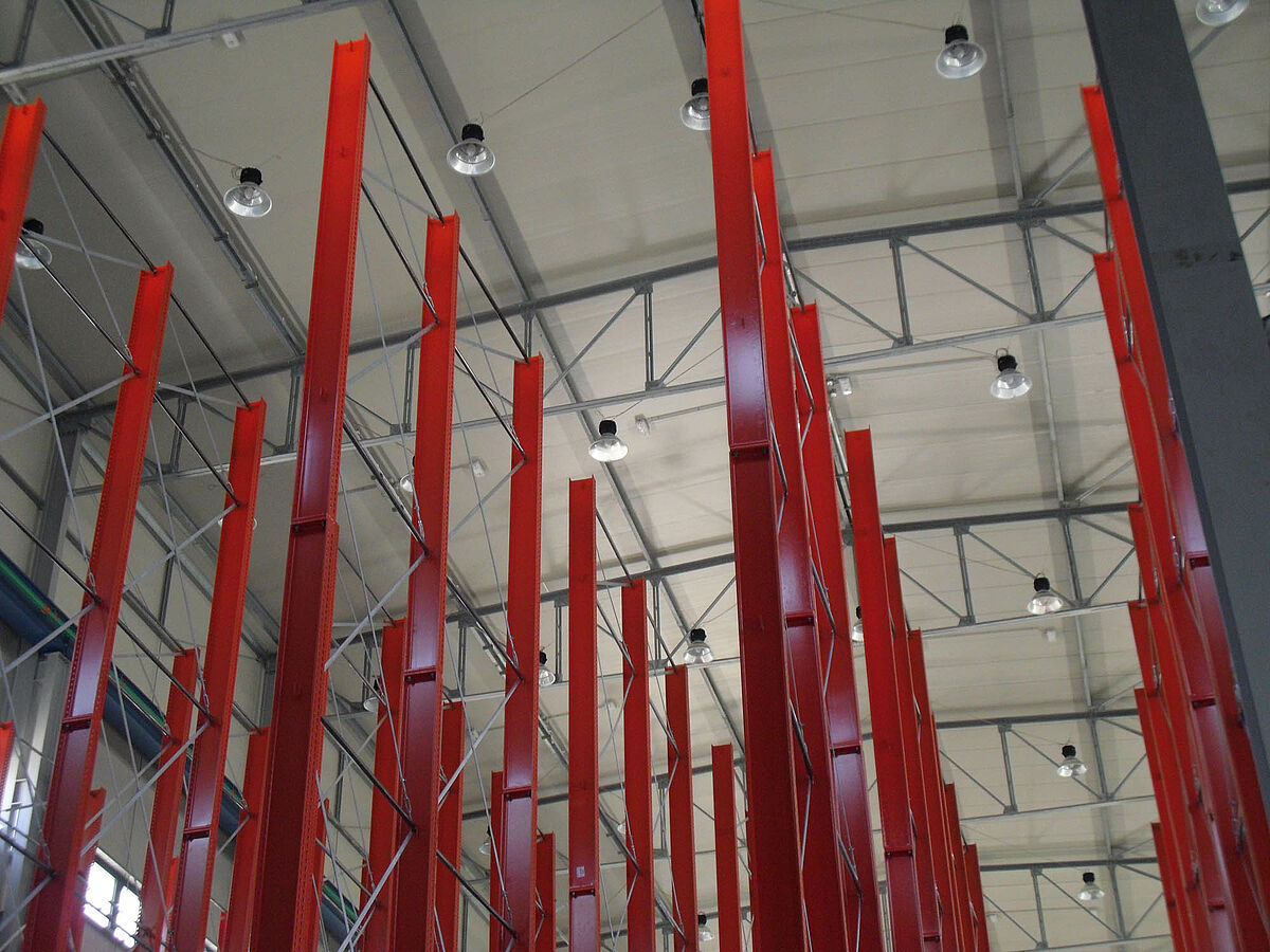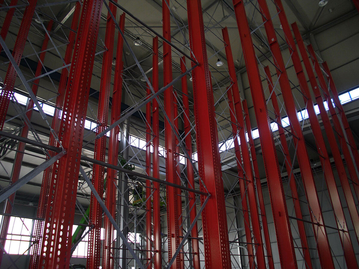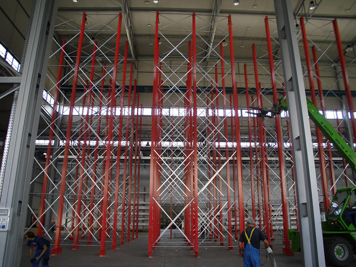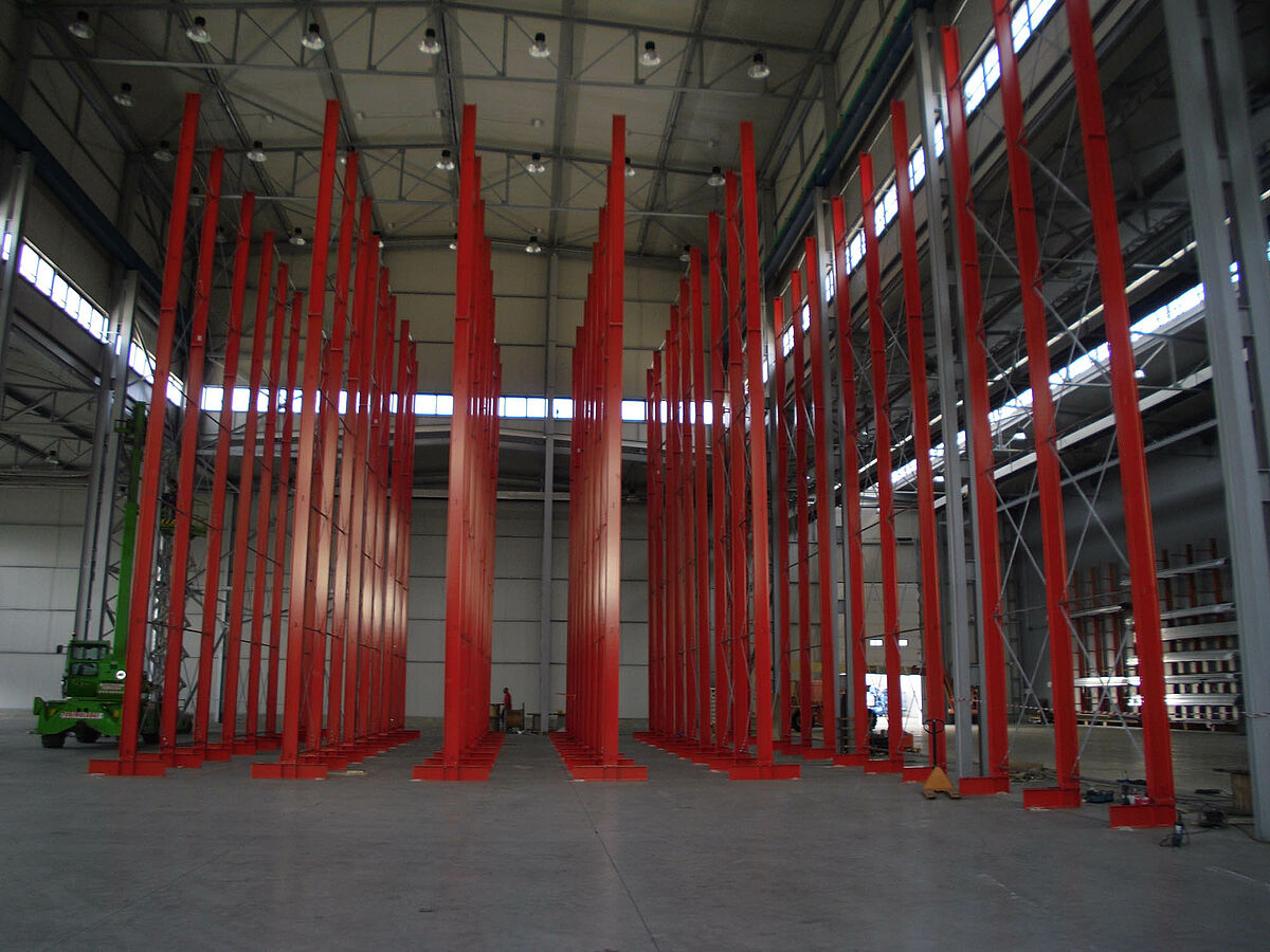 Pri tem so načrtovalci profitirali po zaslugi stabilnih nosilcev, izdelanih iz polnih jeklenih profilov regalov OHRA, saj je bilo možno tako razpoložljivo višino prostora v celoti izkoristiti. Kljub višini 13,7 metrov stojijo nosilci samostojno v prostoru, tako da žerjav ni oviran – kljub temu največja dovoljena upognitev 1/200 na vrhu nosilcev tudi pri polni obremenitvi ni presežena. Zraven tega je bilo možno po zaslugi stabilnih nosilcev v primerjavi s prvotnim načrtom – in ponudbami konkurence – integrirati dodatno, enostransko regalno vrsto. To ustreza dodatku skladiščne kapacitete za približno 10 odstotkov.