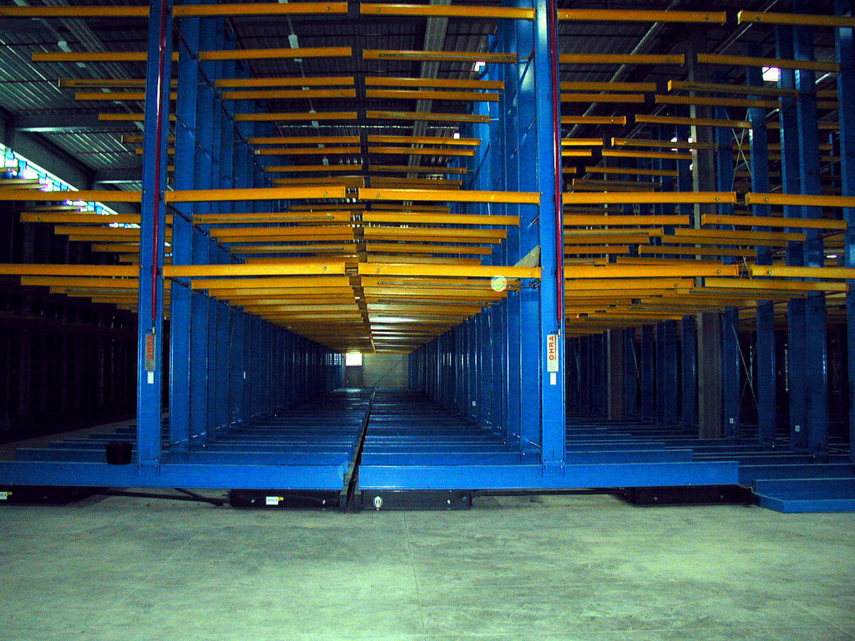 Zaradi velikega volumna kulis, jih je posebno težko skladiščiti, po možnosti zlasti za hitro in poceni menjavo naj bi oder ostal v direktnem dostopu. Končna rešitev je bila v premičnih konzolnih regalih. Velike palete (2,2 x 6 m) v treh etažah se skladiščijo na 2,5 m dolgih nosilnih konzolah. V mestnem gledališču Karlsruhe se je postavilo 6 premičnih vozov s dvostranskimi konzolnimi regali v skupni dolžini 60 m. Visoke protipožarne zahteve je OHRA že pridobila na podlagi izkušenj v kulisnem skladišču opere v Zürichu. Izdelala je gibljiv cevni sistem od bazne postaje na premične regale.