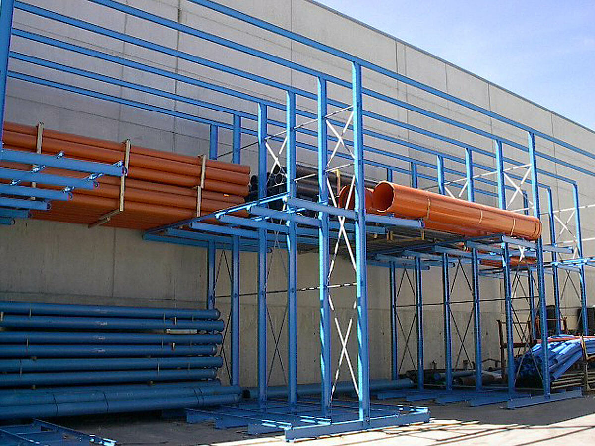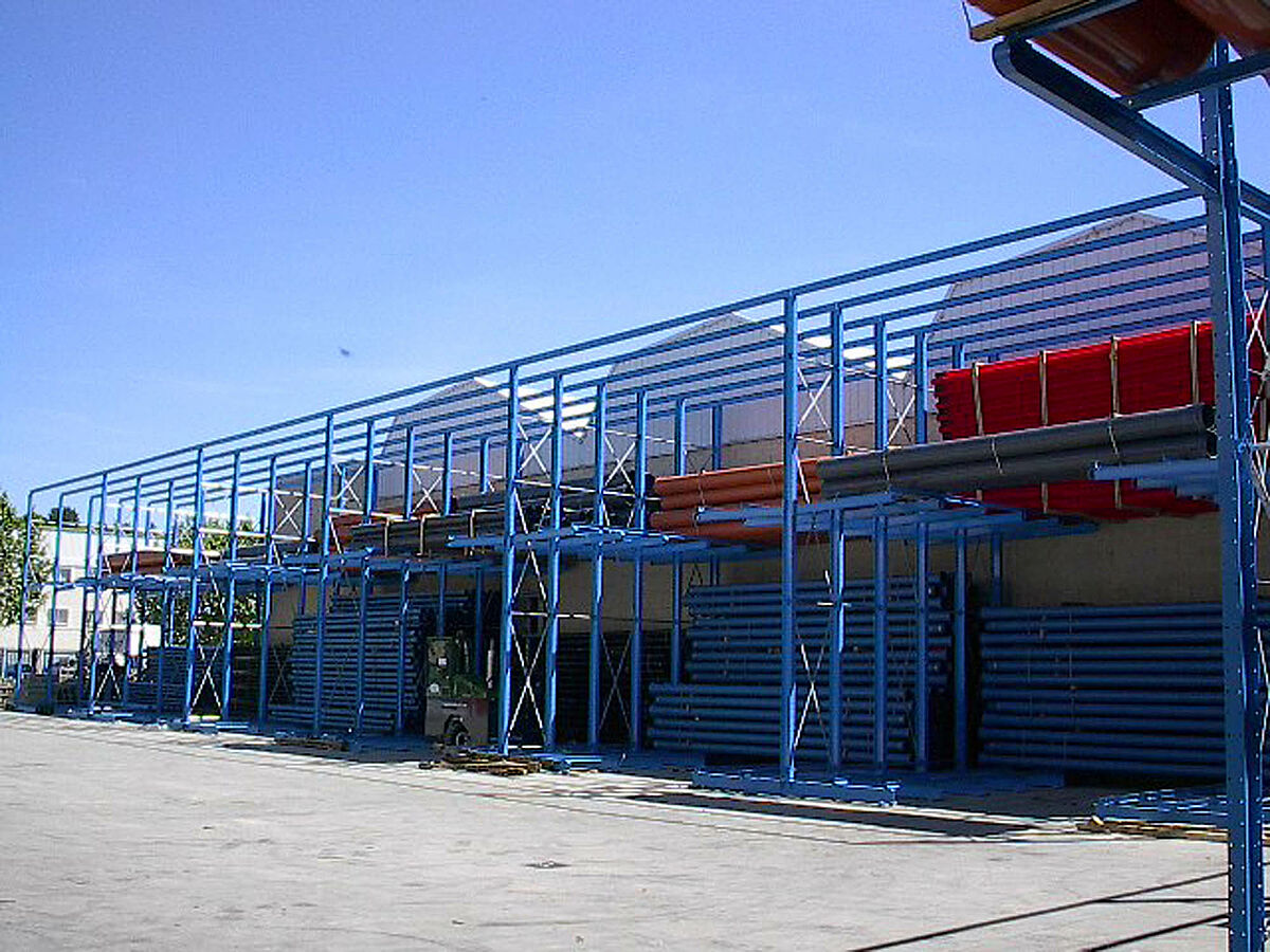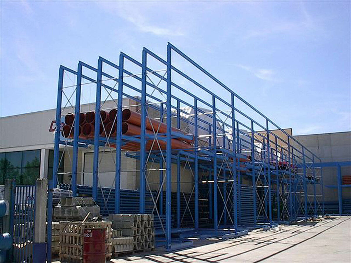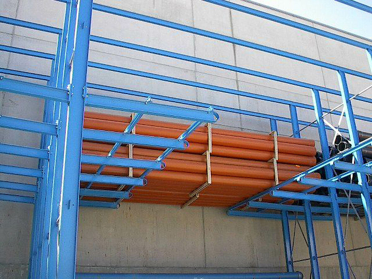 Kot dopolnitev k drive-in regalu je OHRA dobavila in montirala dodatne robustne konzolne regale. Tu se skladiščijo artikli, ki niso tako pogosto v uporabi. Cevni bundi se skladičijo v večih nivojih. Zaradi dolžine konzol do 2.500 mm lahko stranka vstavi tudi 2 paketa eden za drugim.