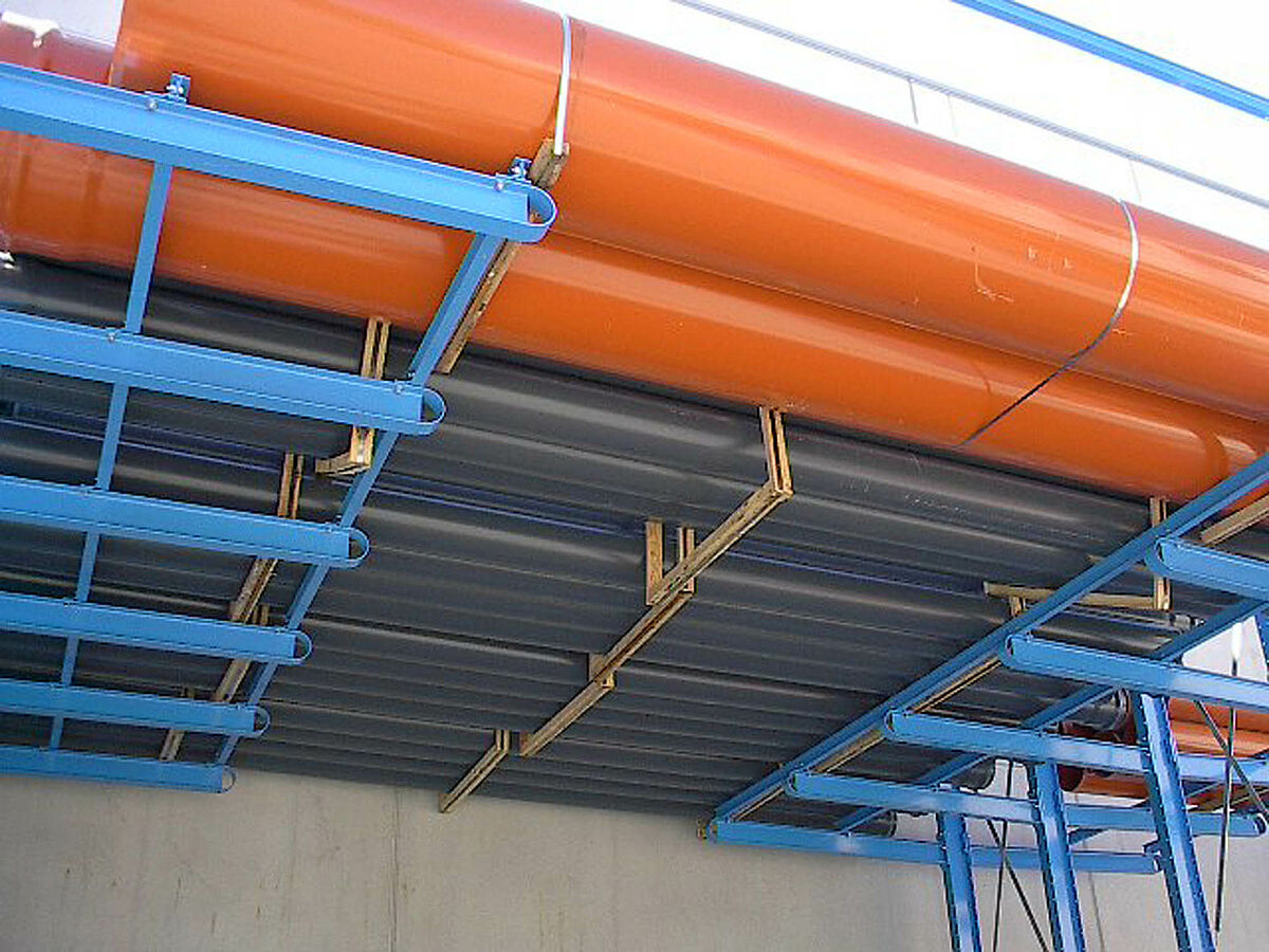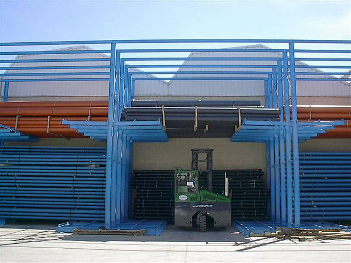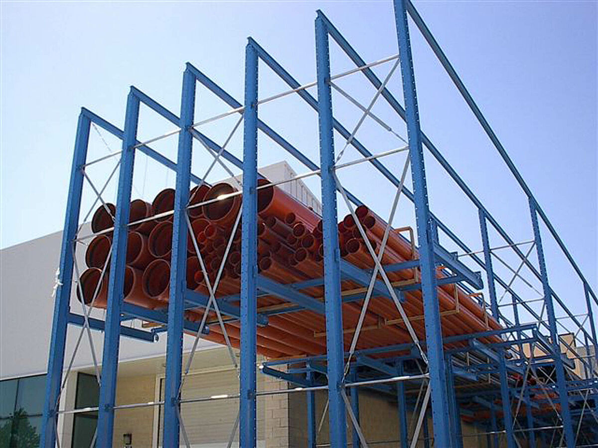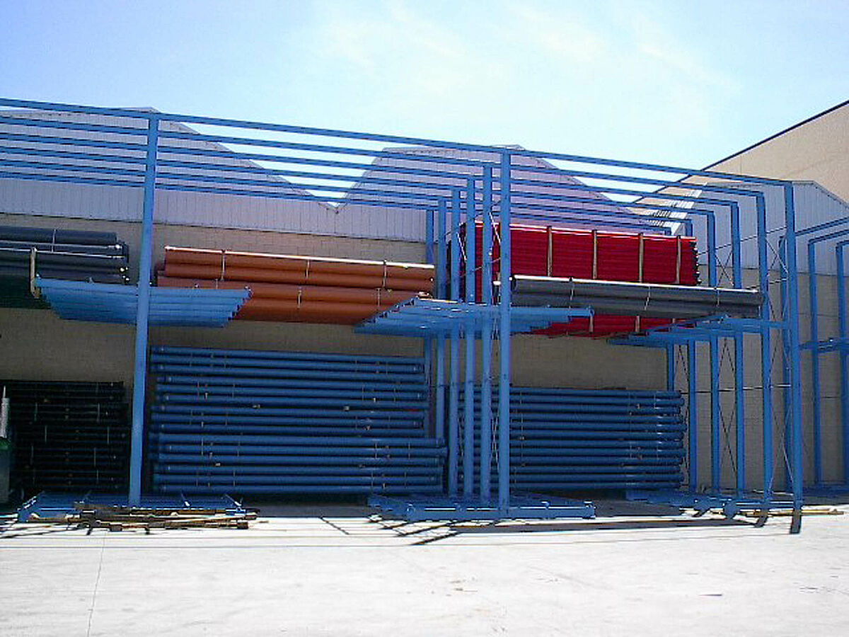 Kot dopolnitev k drive-in regalu je OHRA dobavila in montirala dodatne robustne konzolne regale. Tu se skladiščijo artikli, ki niso tako pogosto v uporabi. Cevni bundi se skladičijo v večih nivojih. Zaradi dolžine konzol do 2.500 mm lahko stranka vstavi tudi 2 paketa eden za drugim.