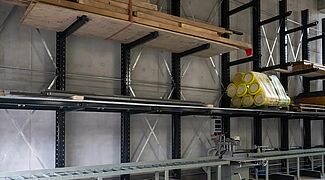 S konzolnimi regali, visokimi skoraj sedem metrov, je podjetje »Ihre Zimmerei« lahko devetkrat povečalo skladiščni prostor na novem sedežu podjetja v Metzingenu. Regali podjetja OHRA so bili glede dimenzij, opreme in površinskih premazov natančno prilagojeni zahtevam tesarskega podjetja. Zahvaljujoč opremi z mrežastim dnom in konzolnimi mostovi regali ponujajo prilagodljiv prostor za shranjevanje najrazličnejših izdelkov in formatov palet. Dodatni vertikalni regali omogočajo prostorsko varčno vertikalno shranjevanje plošč različnih dimenzij. Zaradi regalnih sistemov ima tesarsko podjetje na voljo velike skladiščne kapacitete, zaradi široke palete možnosti skladiščenja pa so transportne poti brez materiala in drugih ovir – samo to je podjetju »Ihre Zimmerei« omogočilo občutno povečanje produktivnosti.